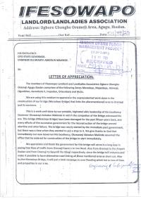 Ifesowapo Landlords Association's Appreciation